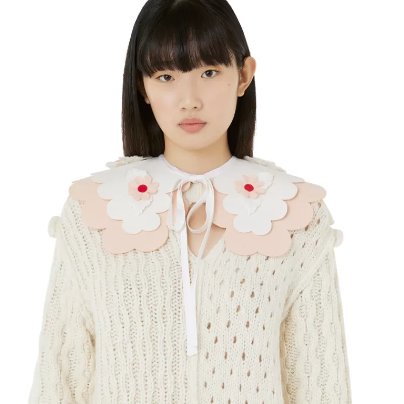 Collar With Double Scallop Embellished By 3D Flower Embroidery.